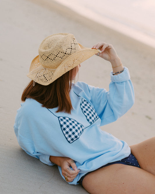 Blue Gingham Bikini Lightweight Crew