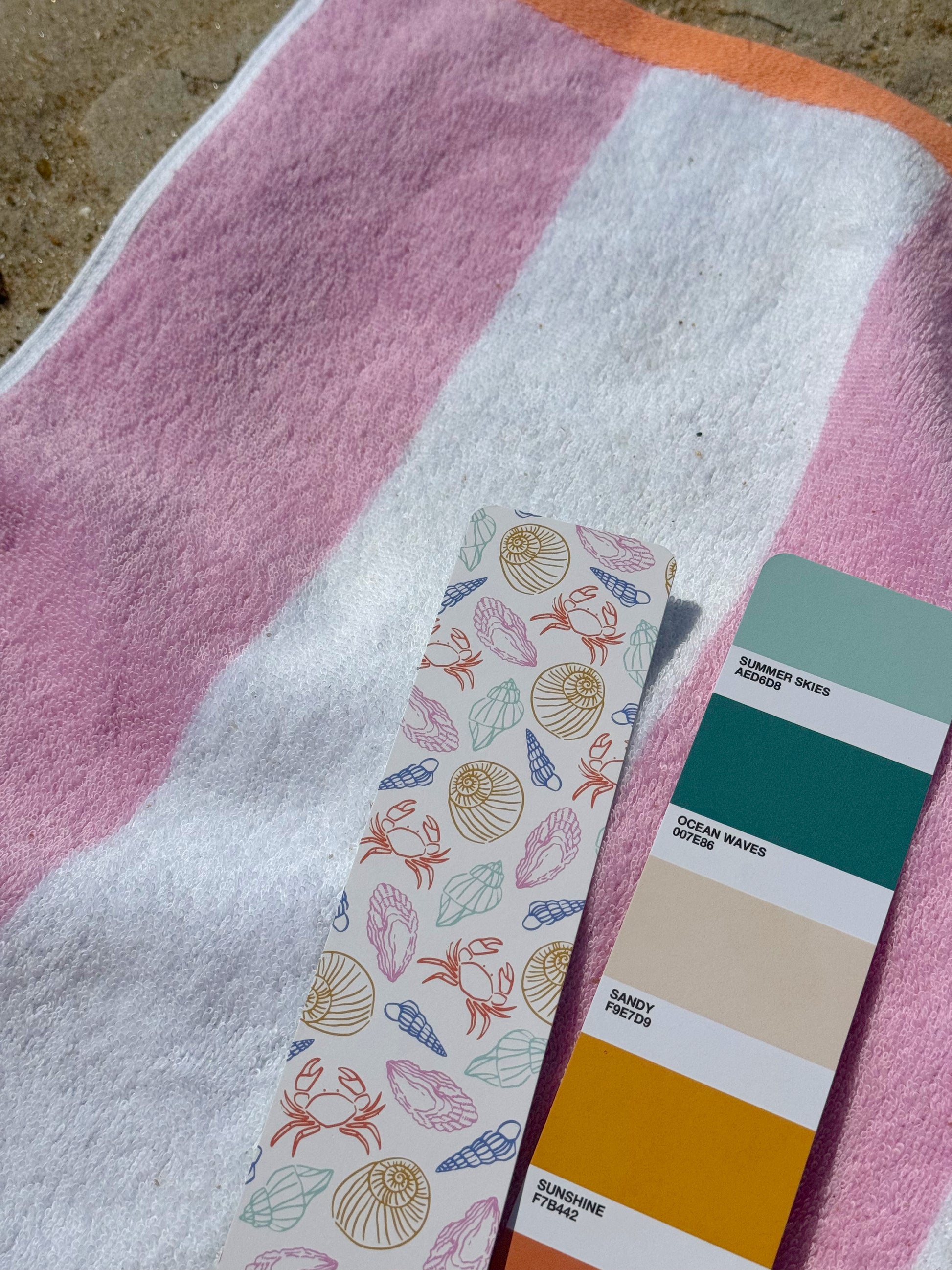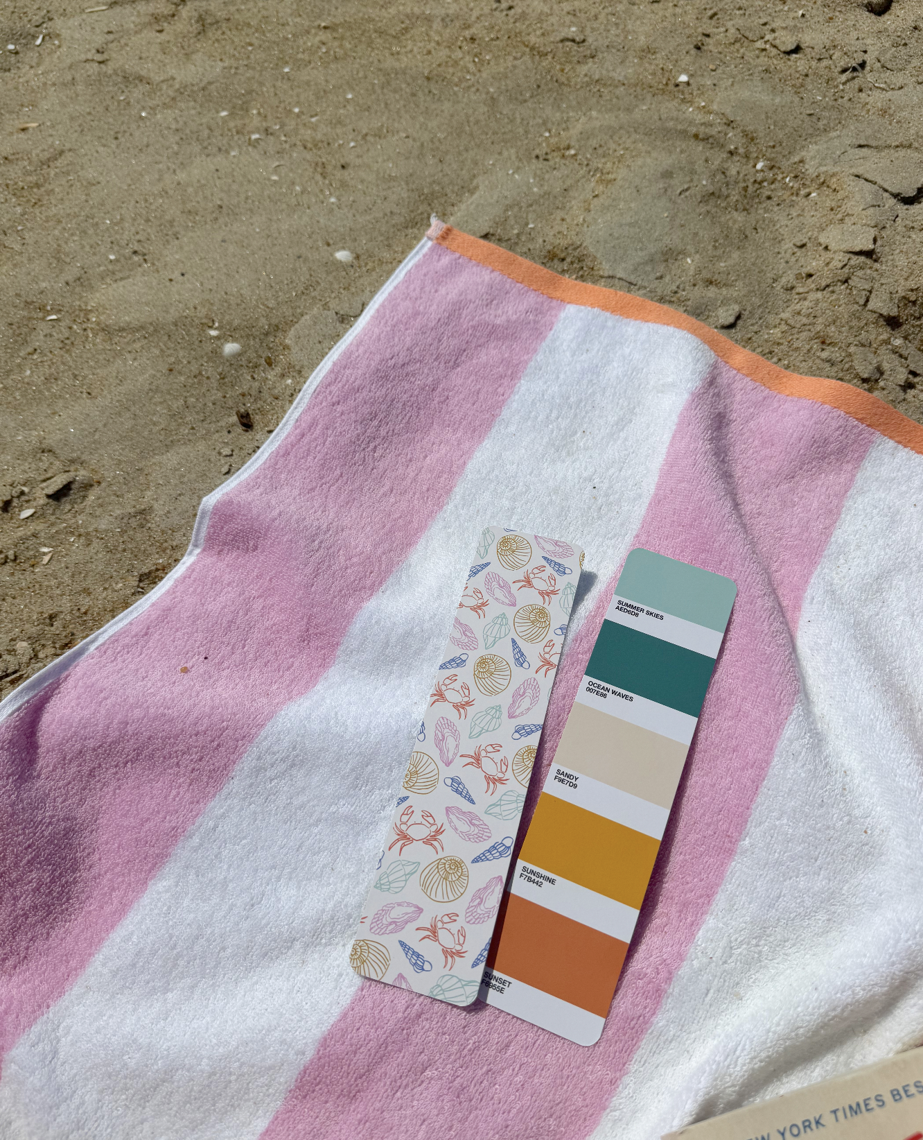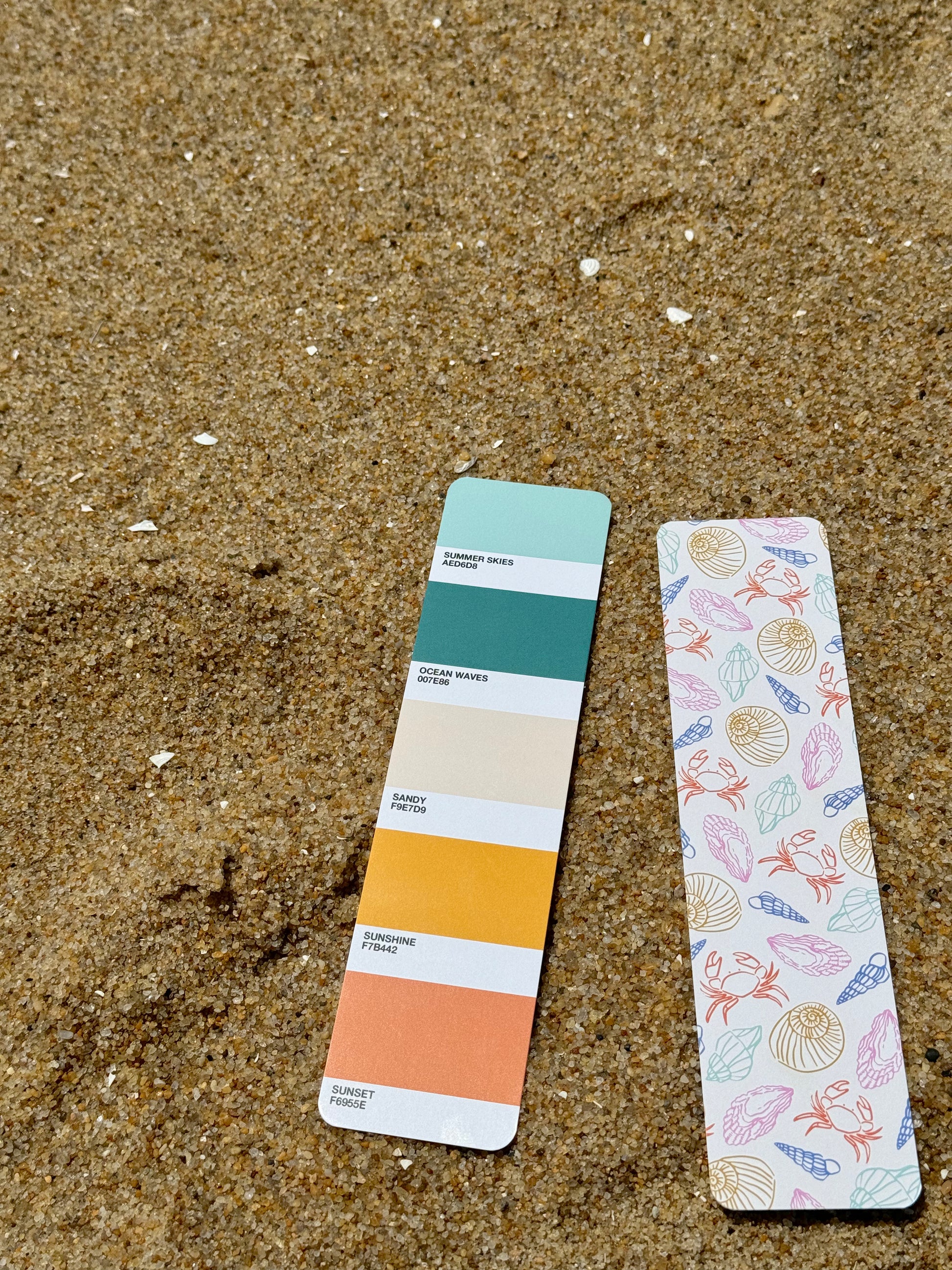 - the color swatch bookmark colors go onto the back of the bookmark, and the seashell bookmark has a solid teal back