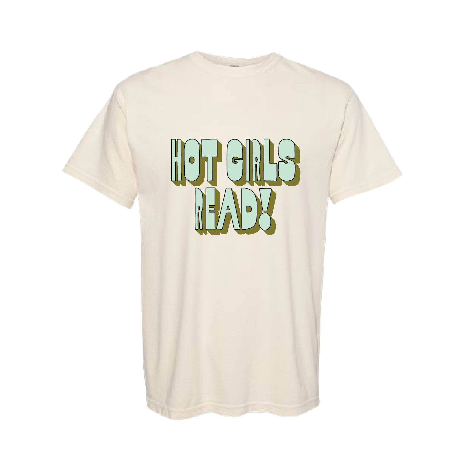 Hot Girls Read Ivory Short Sleeve Tee - Teal & Olive Green