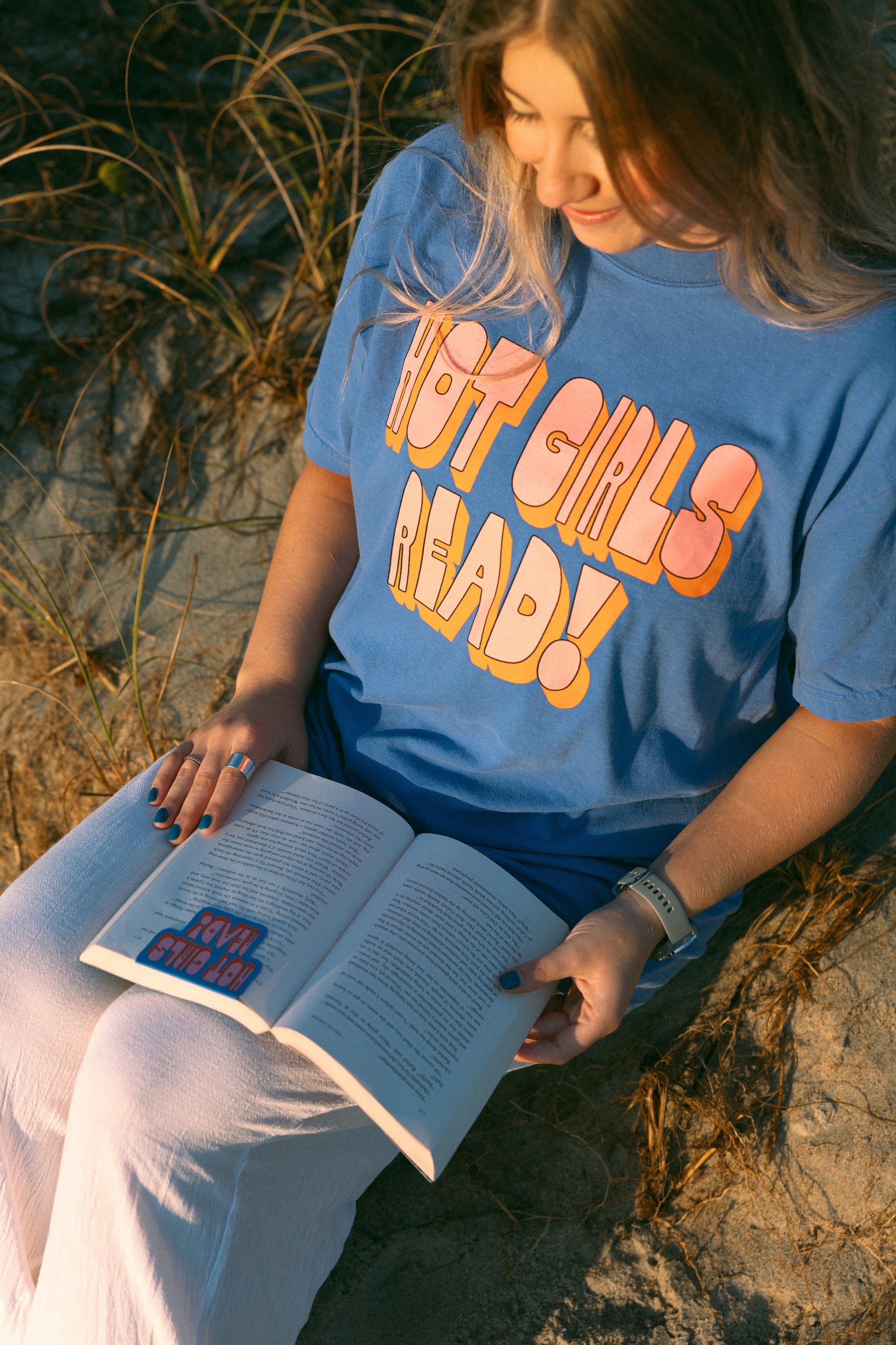 Hot Girls Read Purple Short Sleeve Tee - Pink & Orange
